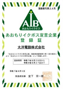 三沢電気工事業協同組合に所属し、2010年にISO9001(品質)・ISO14001(環境)を認証取得、電気工事、電気通信工事、消防施設工事に於ける調査・設計・施工・維持管理等を提供してまいりました。